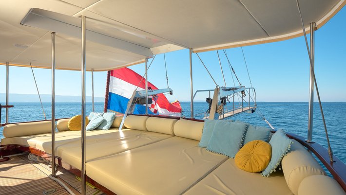 Boat price includes: Port taxes and all other tourist taxes, 4 crew members, use of all water toys on board, fuel for 4 hrs of navigation per day, bed sheets and towels and sun towels.