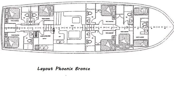 Phoenix Bronze can accommodate up to 12 guests in 6 double cabins: 1 master cabin and 5 double cabins. All with ensuite facilities and A/C.