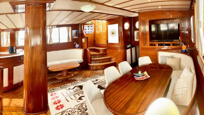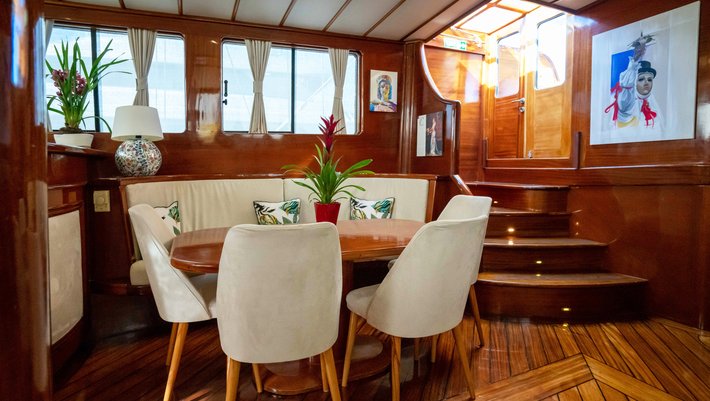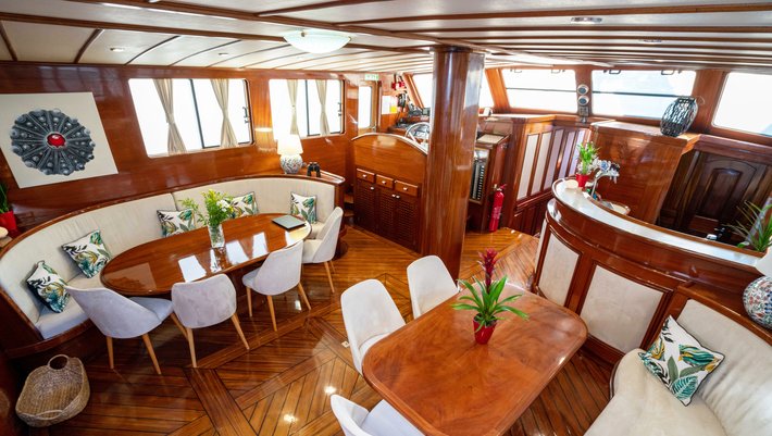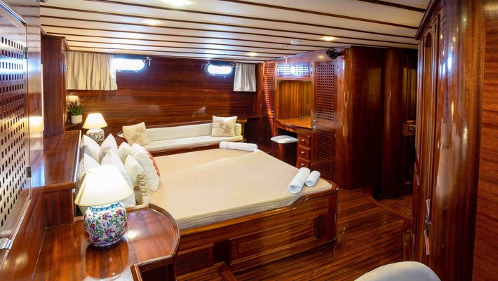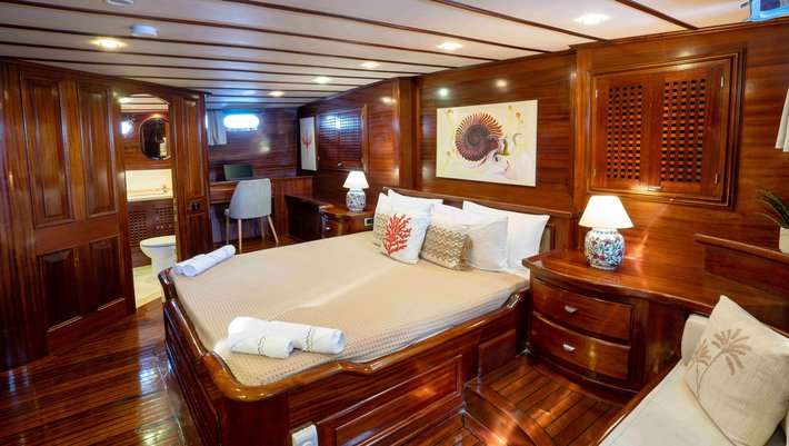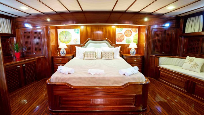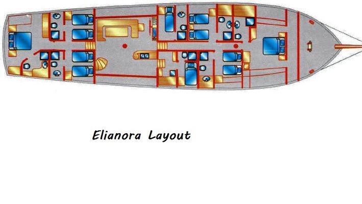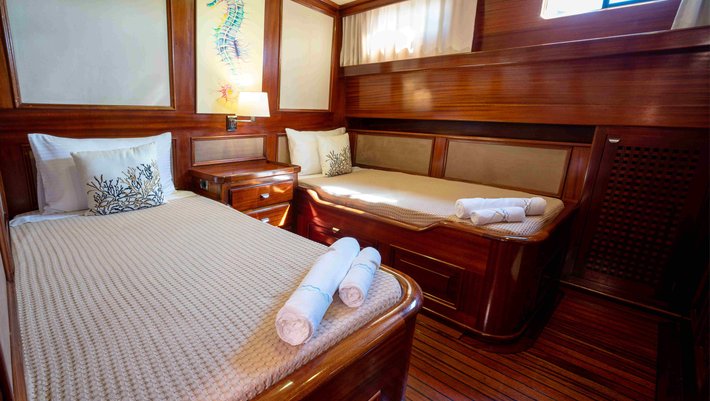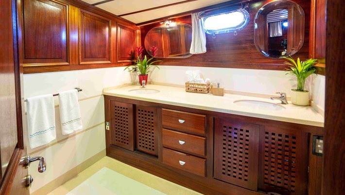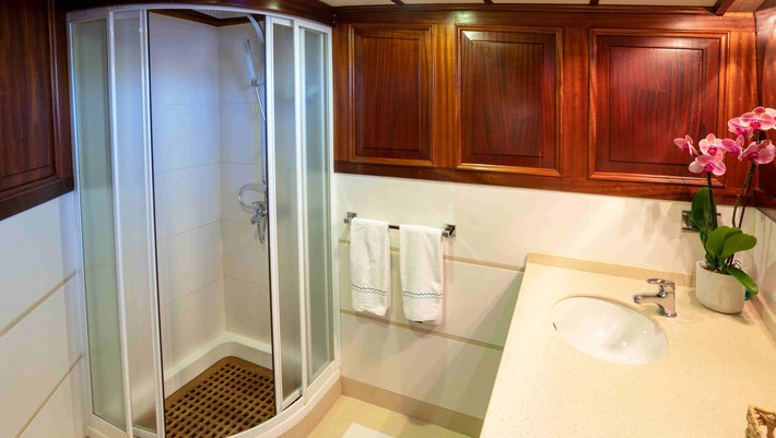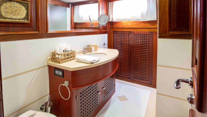 6 double cabins: 2 Master and 4 twin, all with ensuite bathrooms and air conditioning.