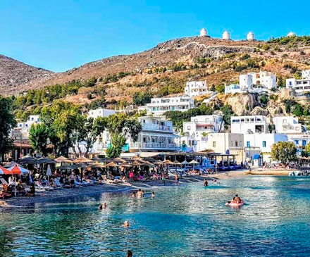 The island also has other fascinating villages, such as Vathi, set in a fertile valley full of citrus trees; to the west, Massouri, Mirties, Kamari, and Panormos, where you can enjoy their famous seafood specialties.