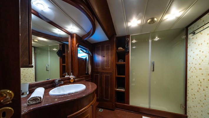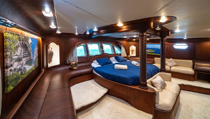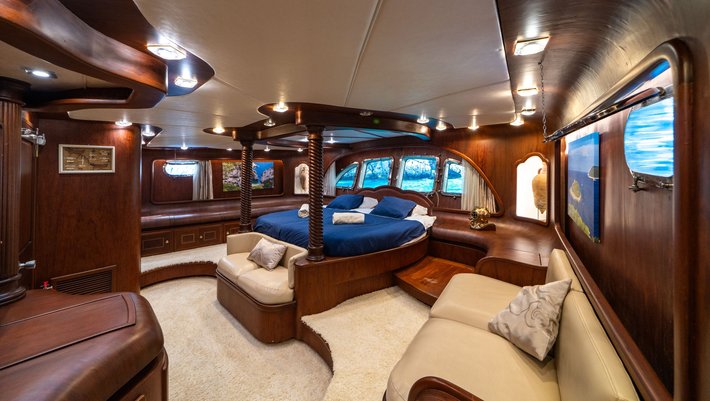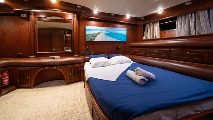 5 camarotes dobles todo con baño en-suite: El camarote principal con cama redonda de 200 cm de largo x 230cm de ancho