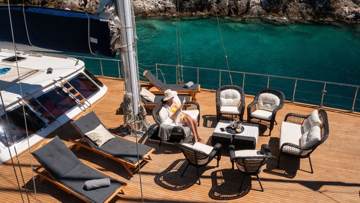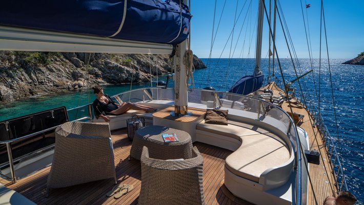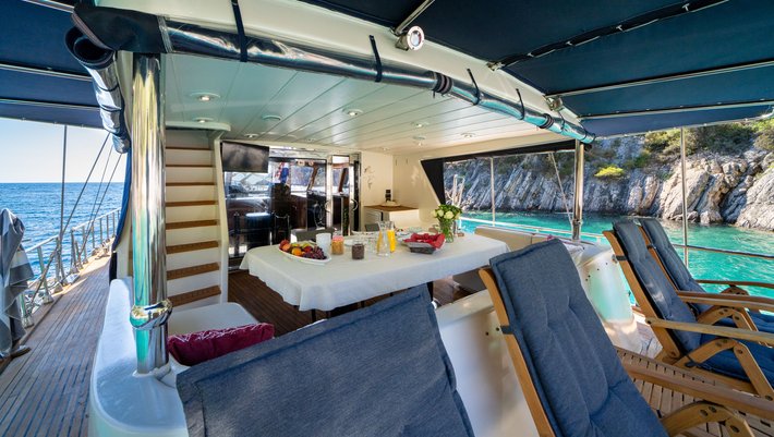 EL PRECIO INCLUYE: alojamiento a bordo, permisos, seguros, todo el equipo de a bordo excepto moto acuática, que es un extra 150€/h, ropa de cama y toallas, 4 h de la navegación/día, limpieza, la gasolina del tender, el generador 24/7, conexión Wi-Fi a Internet, el IVA.