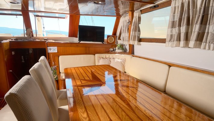 TV , músic player, WIFI. Ducha exterior en cubierta. Cubierta de teca.