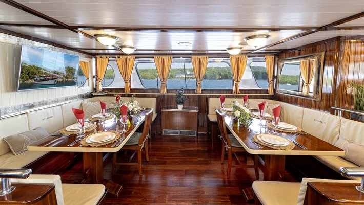 Precio del barco incluye: Alquiler de la embarcación, tripulación completa, servicio de habitaciones, cambio de toallas cada dos días, cóctel de bienvenida, aire acondicionado sin limite, jacuzzi, el uso de equipo básico de actividades acuáticas.