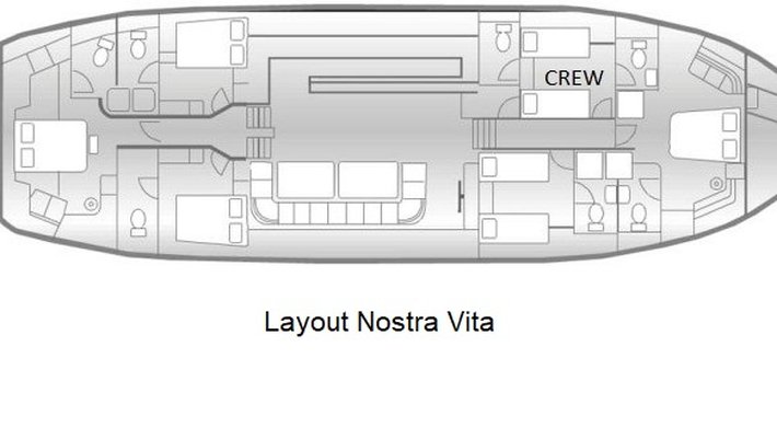 Baño en cada camarote con ducha. Capacidad máxima 10 personas