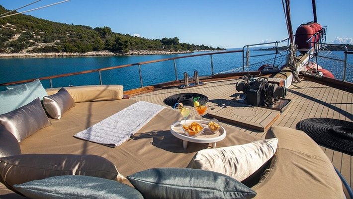 El precio del barco incluye: El alquiler semanal en exclusiva de la embarcación, tripulación, 4 horas de navegación diaria, impuestos, 12 horas de aire acondicionado al día, la utilización de todo el equipamiento de ocio a bordo (Esquís, donuts, padel surf, canoa,equipo de pesca, WIFI.