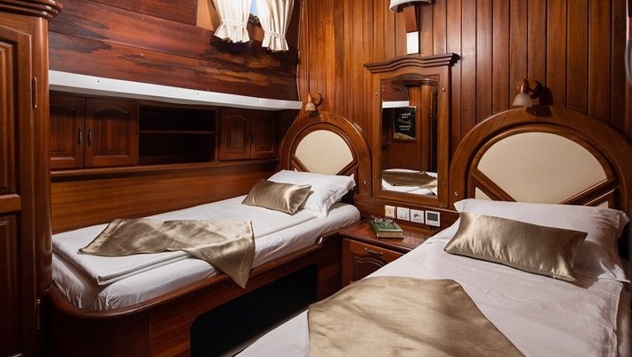5 camarotes dobles: 2 Master con camas king size, 2 VIP con cama queen size +1 con camas individuales.