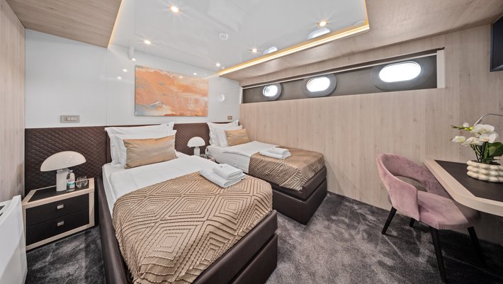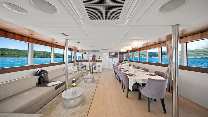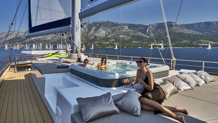 Los precios de alquiler del barco incluyen: alojamiento en el yate, 8 miembros de la tripulación, IVA croata, hasta 4 horas de crucero por día, 24 horas al día de aire acondicionado, servicio a bordo, impuestos, uso de equipos de ocio a bordo, WiFi.