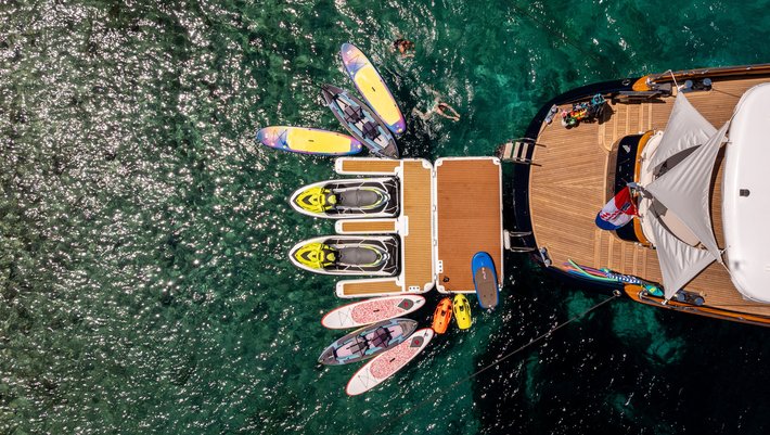 Auxiliar con 150 CV, esquí acuático, wakeboard, moto acuática, Jet ski, equipos de snorkel, 2 x padel surf, kayak,, TV, WiFi, juegos de mesa.