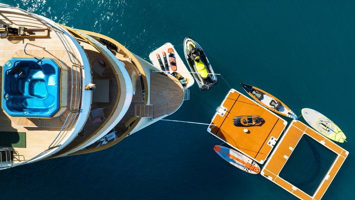 - Combustible para el motor principal y los generadores; combustible para el crucero; combustible para la embarcación auxiliar y el equipo de deportes acuáticos