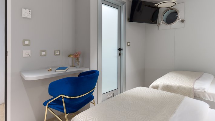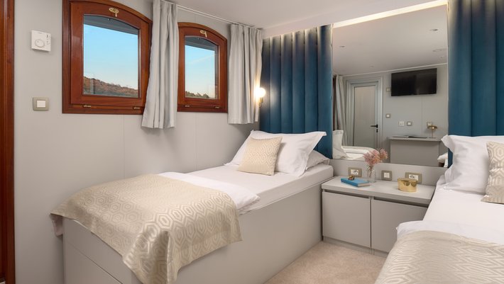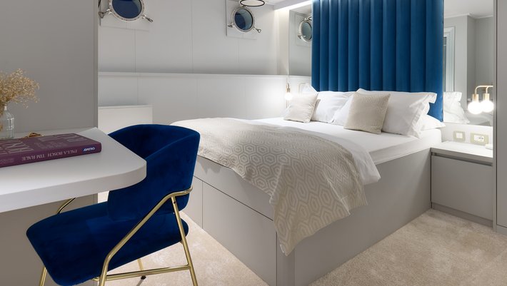 - Cubierta inferior: 2 dobles, 4 convertibles y 2 triples, todos con baño en-suite.