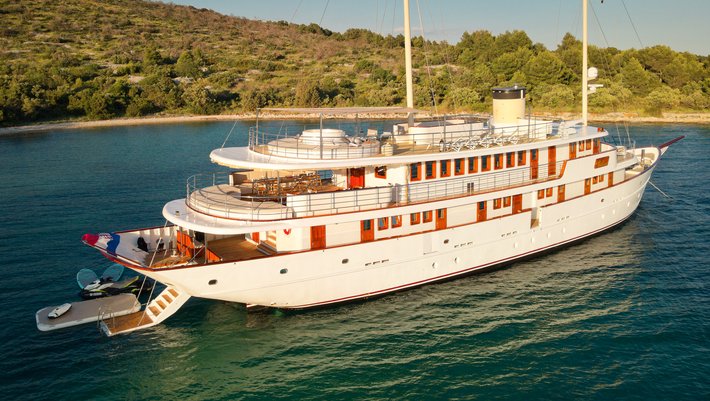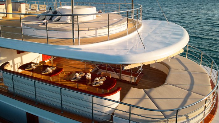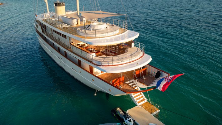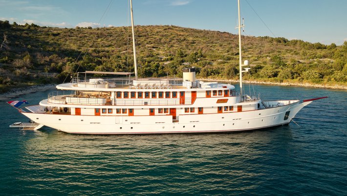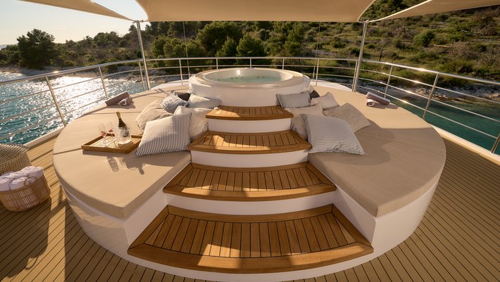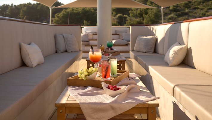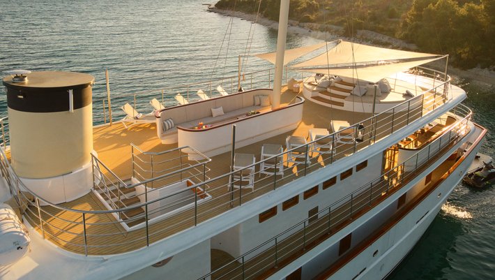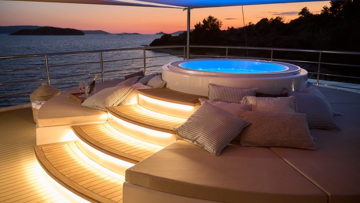 Alojamiento hasta 38 invitados en 18 camarotes, combustible para hasta 4 horas de navegación por día, servicio de 10 miembros de la tripulación, Wi-Fi ilimitado, limpieza diaria, toallas de ducha y de playa, TV / SAT, uso del jacuzzi, uso ilimitado aire acondicionado.