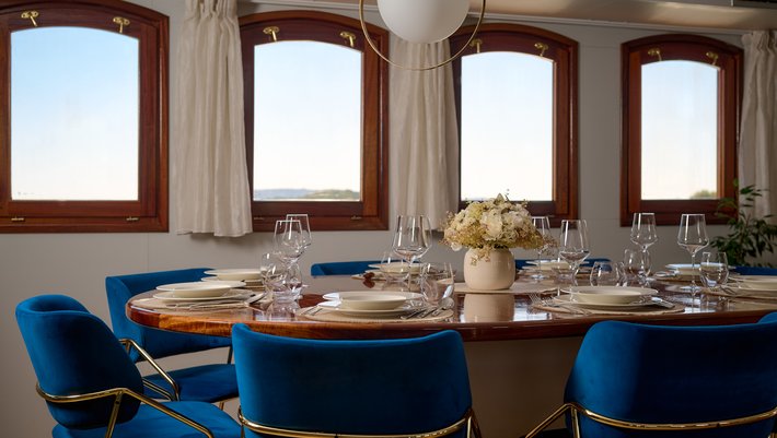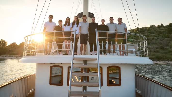 Tripulación: 10. Capitán, chef, asistente del chef, 3 marineros, 2 azafatas y 2 camareros