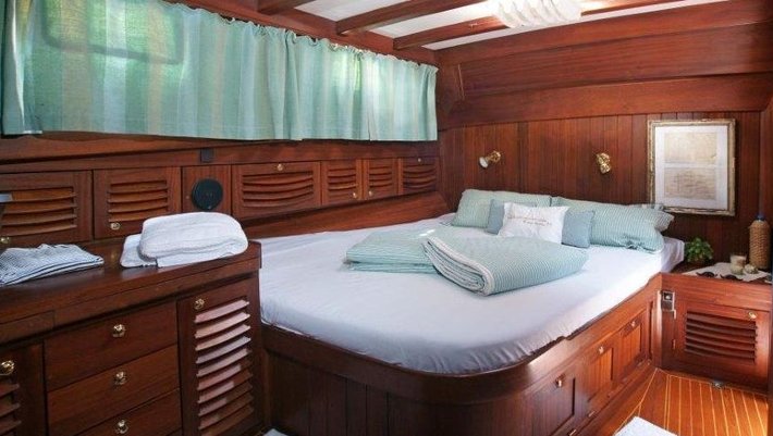 3 cabinas dobles: 1 Master y 2 con camas individuales, todas con baño en-suite y aire acondicionado.