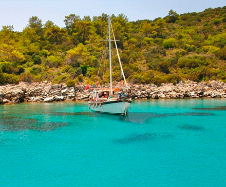 Embarque en el puerto de Bodrum alrededor de las 4 p.m. Saludo de bienvenida e introducción a la tripulación. Pequeña sesión informativa para familiarizarse con el barco y si lo desean repaso del itinerario con el capitán y con las cartas náuticas. En Bodrum, cerca del barco, se puede visitar el Mausoleo de Halicarnaso, una de las Siete Maravillas del Mundo Antiguo. Y posteriormente navegar a una bahía cercana para nadar, bucear y pasar la noche.