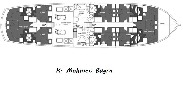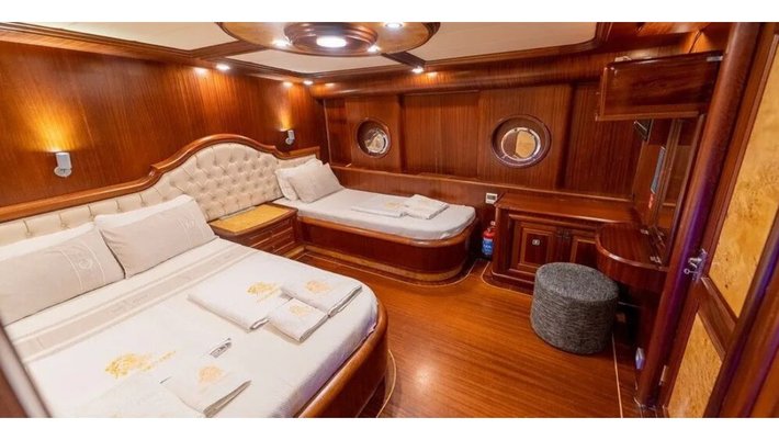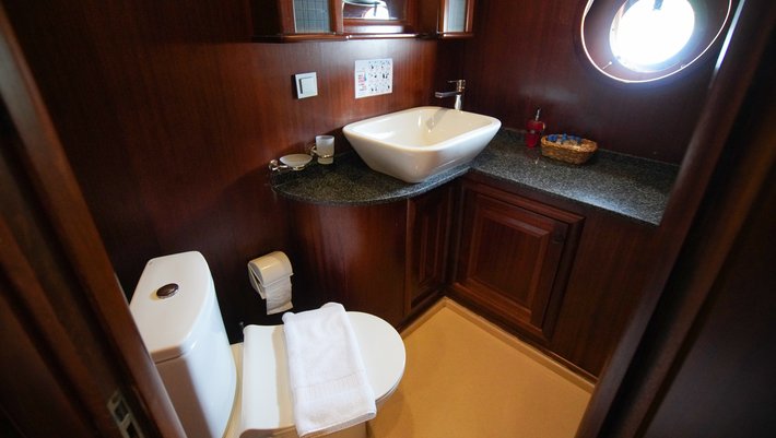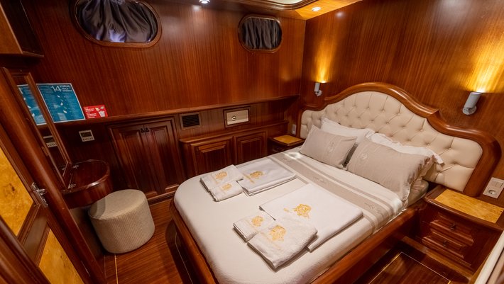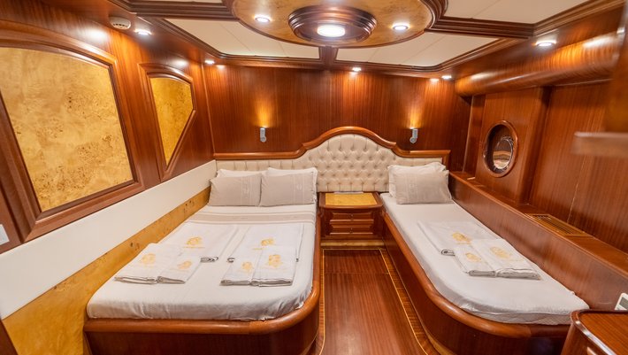 8 camarotes dobles: 2 principles muy amplios, 4 dobles y otros 2 triples. Todos con baño en-suite, aire acond. y TV