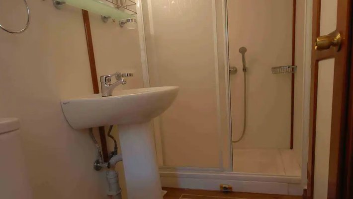 12 cabinas dobles: 2 con cama de matrimonio y 10 con camas individuales. Baño en cada camarote