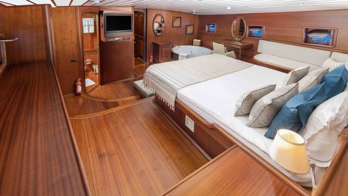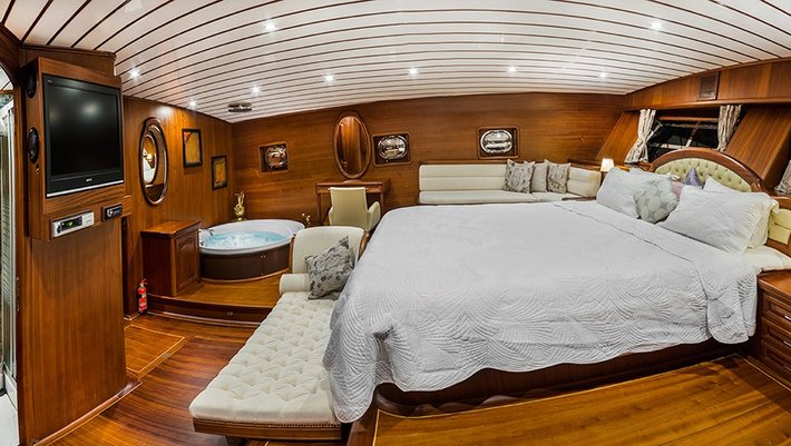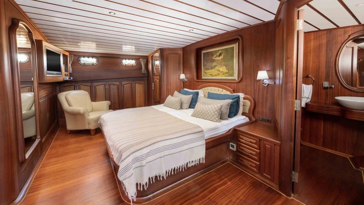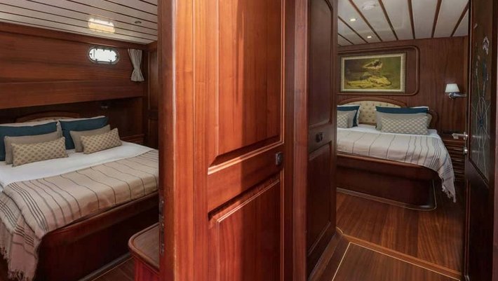 5 camarotes dobles: 2 master y 3 dobles todos con baño en-suite, secador de pelo, TV, minibar y aire acondiconado independiente.