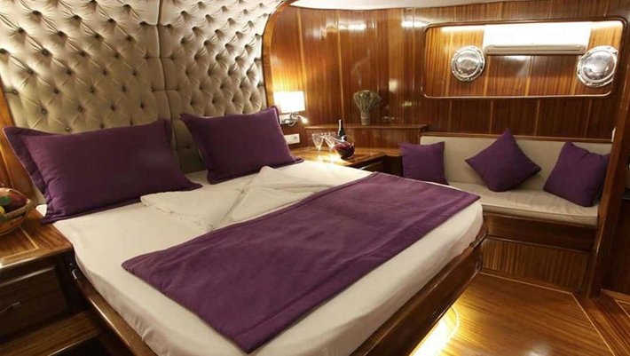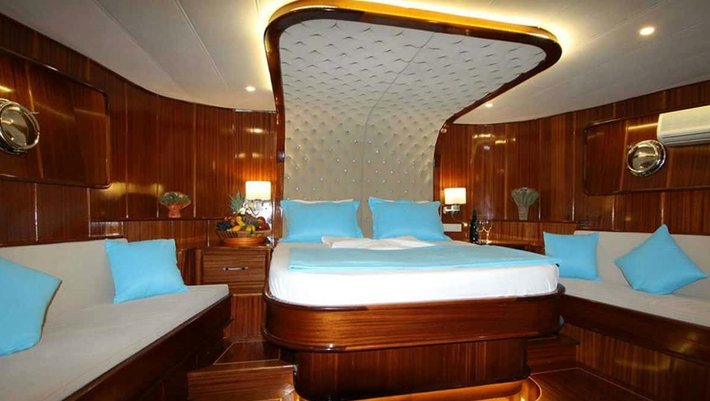 6 camarotes dobles: 2 master, 2 con cama de matrimonio y 2 con camas individuales. Capacidad máxima 12 + 4 de tripulación.