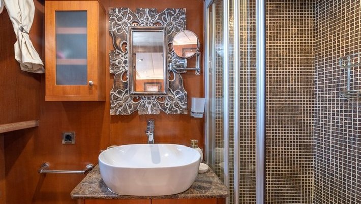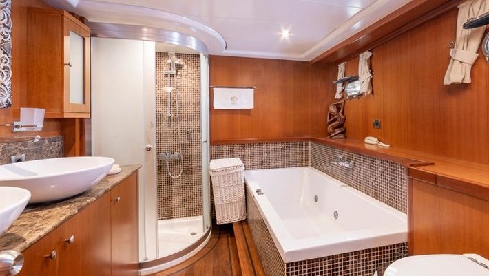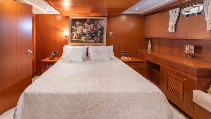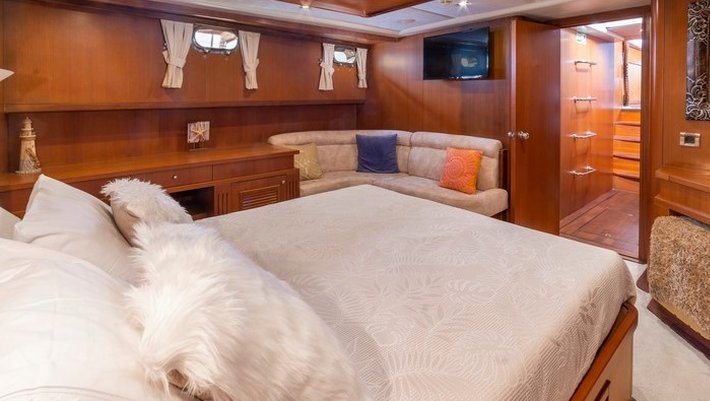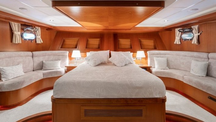4 camarotes dobles: 2 Master y 2 con camas individuales. Todos con baño en-suite, secador de pelo y aire acondiconado. Jacuzzi en un camarote Master Capacidad máxima 8 personas