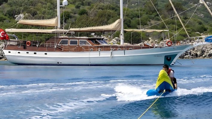 El precio del barco NO incluye: Mas de 4 horas de navegación, tasas portuarias e impuestos para Islas Griegas (1.500€ aprox.), amarre en marinas privadas, combustible para la embarcación auxilar para actividades acuáticas, visitas a parques naturales, propinas para la tripulación, transfers al aeropuerto.