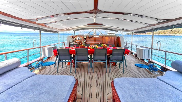 El comedor exterior se encuentra el la popa con mesa para 10 personas.