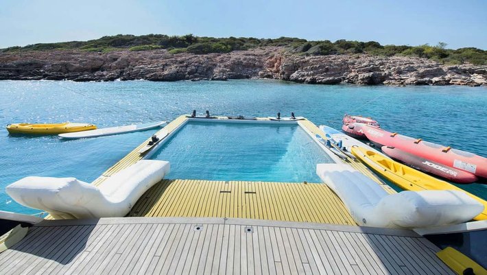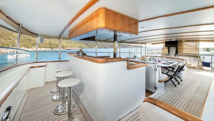 El precio del barco NO incluye: Mas de 4 horas de navegación, tasas portuarias e impuestos para Islas Griegas (7.500€ aprox.), amarre en marinas privadas, combustible para la embarcación auxilar para actividades acuáticas, visitas a parques naturales, propinas para la tripulación, transfers al aeropuerto.