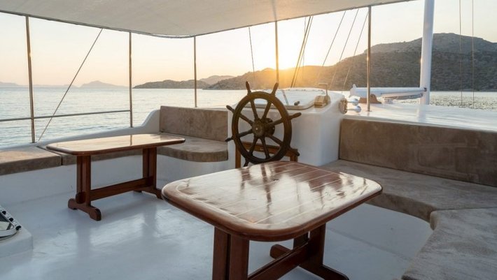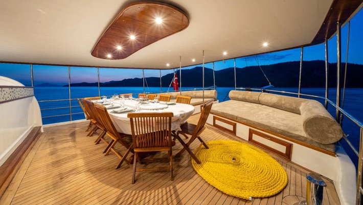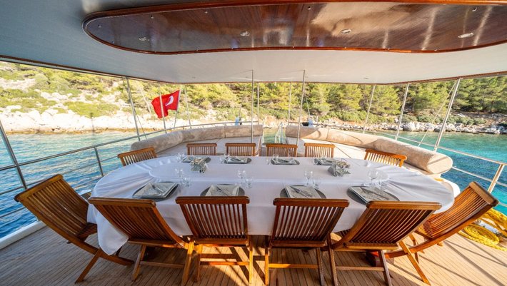 El comedor exterior se encuentra en la popa con mesa para 12 personas.