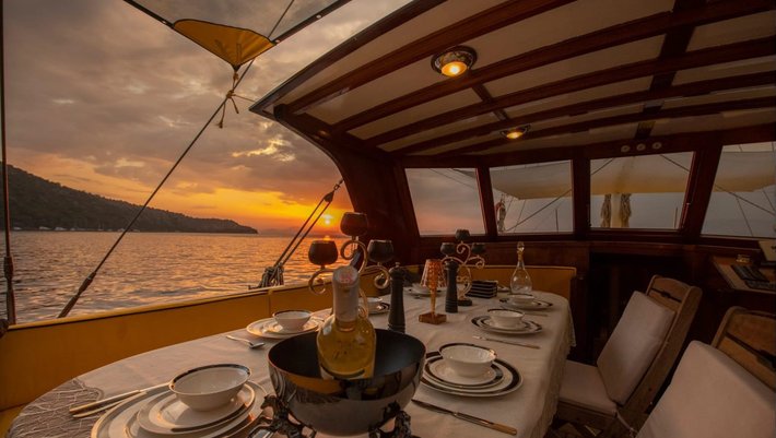 El precio del barco incluye: El alquiler de la embarcación una semana, tripulación, impuestos, seguros, 4 horas de navegación diaria, 4-6 horas de aire acondicionado al día.
