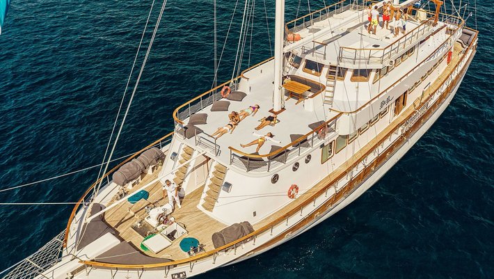 El precio del barco incluye: El alquiler de la embarcación una semana, tripulación, impuestos, seguros, 4 horas de navegación diaria, aire acondicionado (6-8 horas diarias). WiFi, limpieza diaria de camarotes.