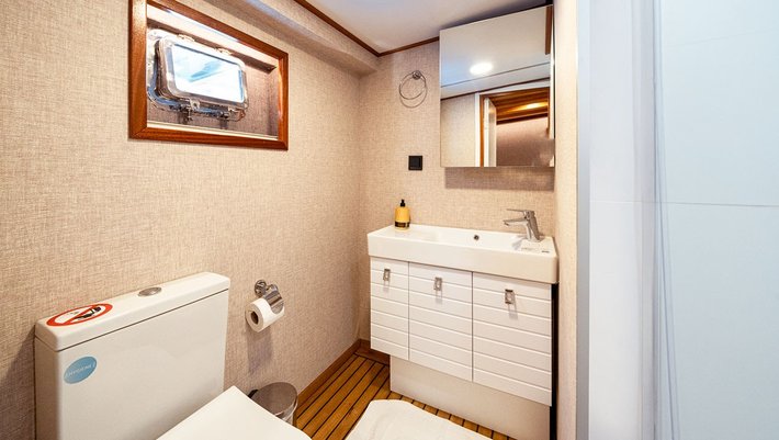 Baño en cada camarote. Aire acondicionado en todas las cabinas.