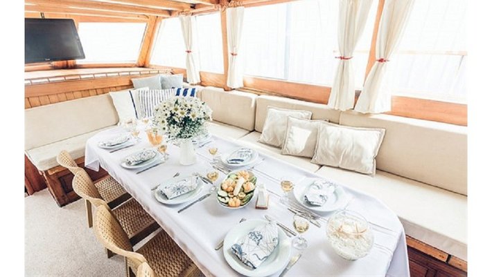El precio del barco incluye: El alquiler de la embarcación una semana, tripulación, impuestos, tasas portuarias, seguros, 4 horas de navegación diaria, 8 horas de aire acondicionado (De 14:00-16:00 y de 22:00 - 04:00), toallas de playa y de ducha
