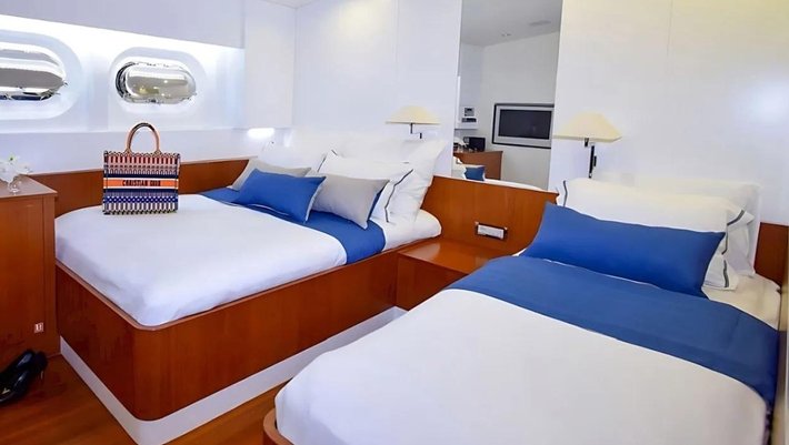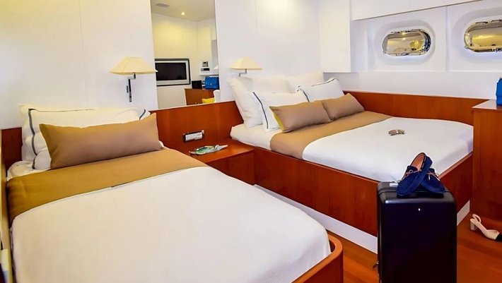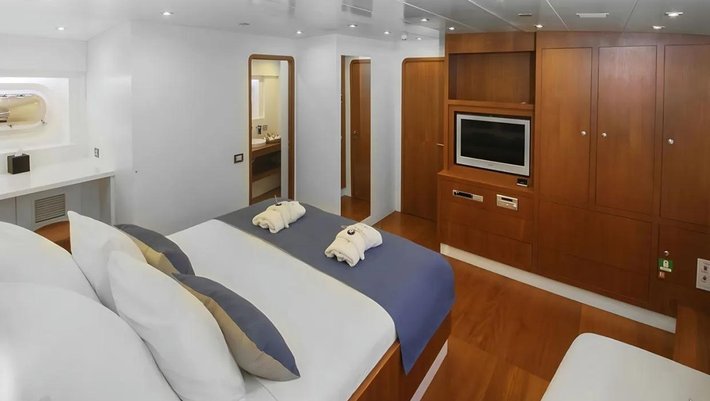 5 camarotes dobles: 1 master , 2 VIP y 2 con cama doble + cama individual, todos con baño en-suite, secador de pelo, minibar y aire acondiconado independiente.