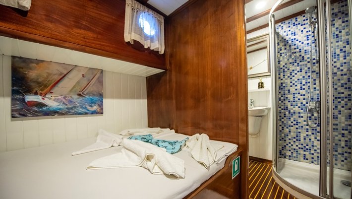 Baño en cada camarote. Aire acondicionado en todas las cabinas.