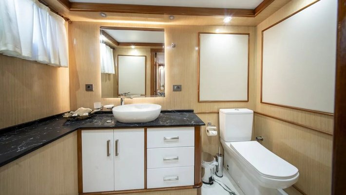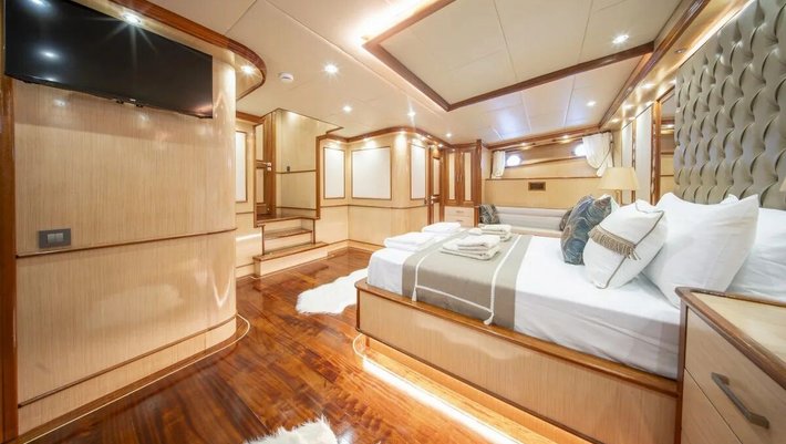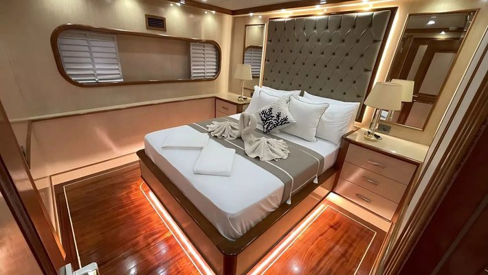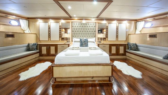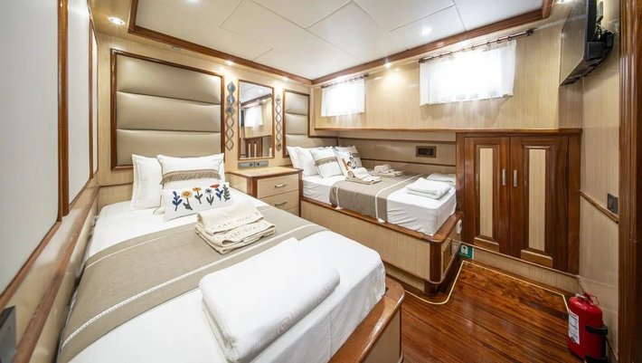 6 camarotes dobles: 2 master, 2 dobles y 2 con triples, todas con baño en-suite, WIFI y aire acondicionado independiente.
