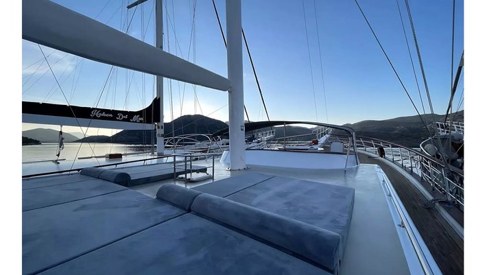 Amplio solarium en proa con colchonetas