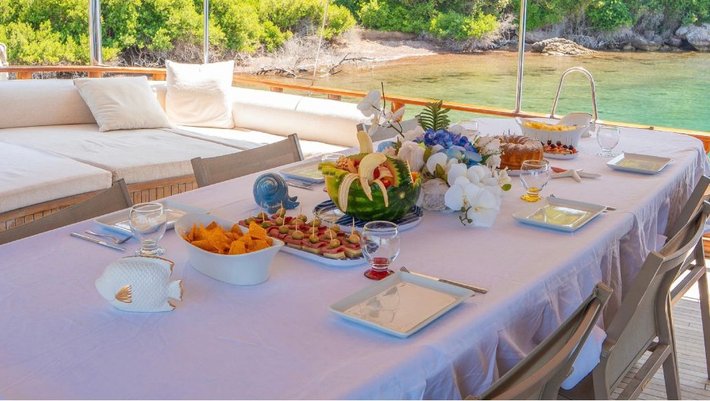 El precio del barco NO incluye: Mas de 4 horas de navegación, tasas portuarias, amarre en marinas privadas, combustible para la embarcación auxilar para actividades acuáticas, visitas a parques naturales, propinas para la tripulación, transfers al aeropuerto.