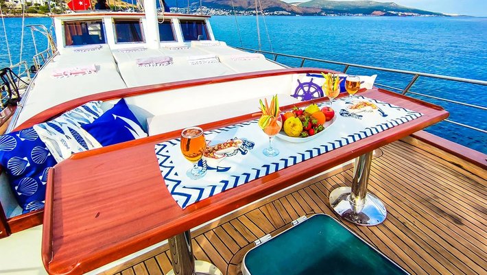 El precio del barco NO incluye: Mas de 4 horas de navegación, amarre en marinas privadas, combustible para la embarcación auxilar para actividades acuáticas, visitas a parques naturales, propinas para la tripulación (5%-10%), traslados al aeropuerto.