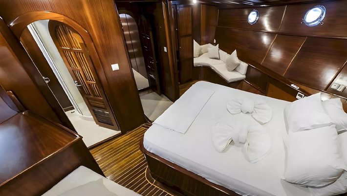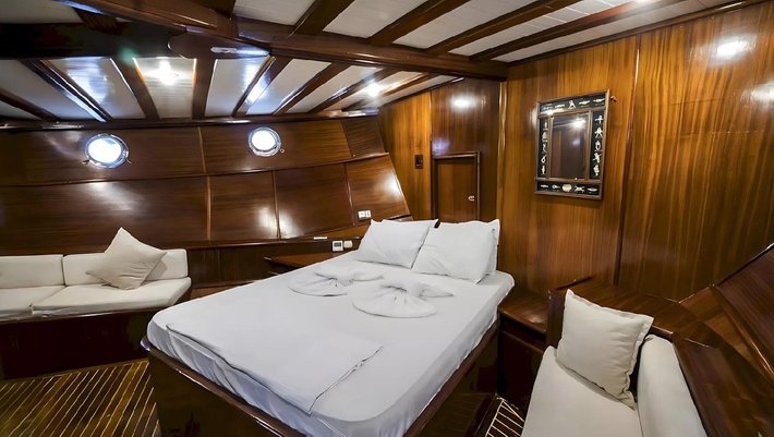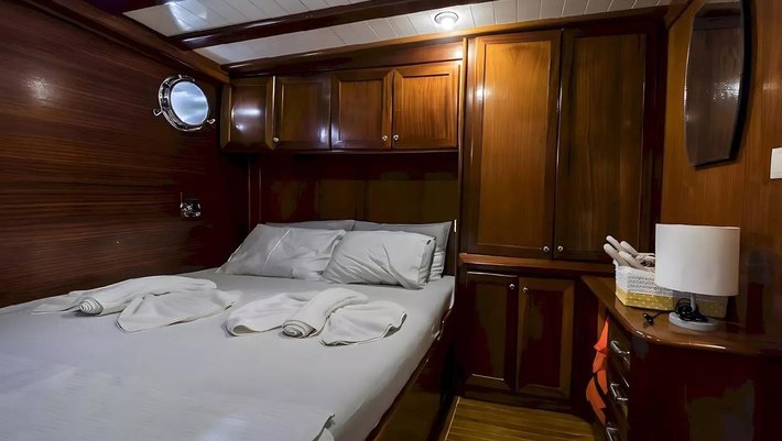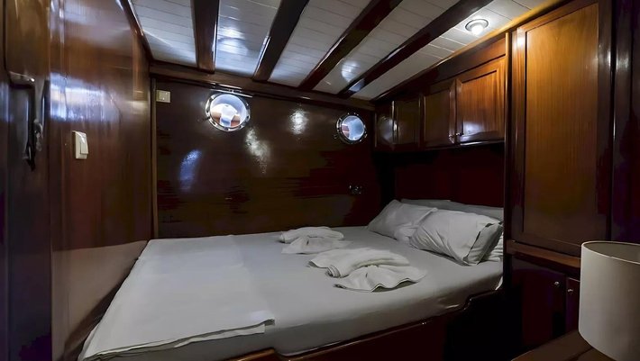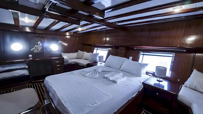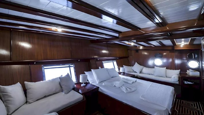 4 camarotes dobles: 2 master y 2 dobles todas con baño en-suite y aire acondiconado independiente. Capacidad máxima 8 personas