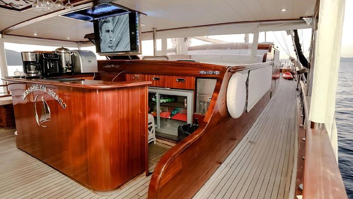 Cubierta de teca. Bar en el salón